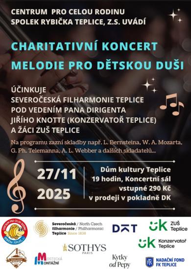 Dne 27. 11. naše žákyně z prvního ročníku oboru předškolní a mimoškolní pedagogika pomáhaly při organizaci charitativního koncertu Severočeské filharmonie - Melodie pro dětskou duši, a to pod záštitou Spolku pro celou rodinu - Rybička. Výtěžek koncertu bude použit na dětské terapie.