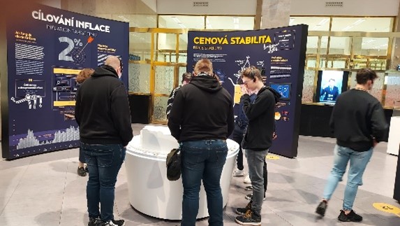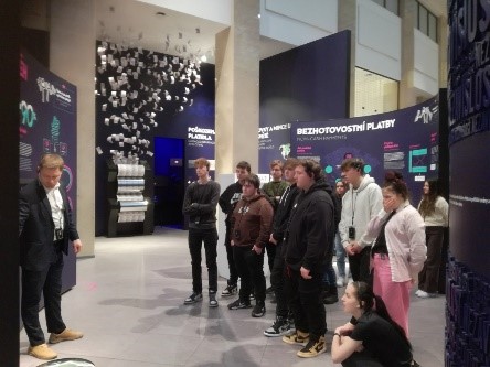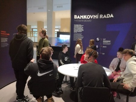 Dne 26. 1. 2023 se žáci tříd MN2, MN3 a IT2 pod vedením Ing. M. Šimůnkové a Ing. M. Rajchertové zúčastnili exkurze do ČNB v Praze. Cílem naší návštěvy byla expozice Za měnou. Formou animovaného filmu žáci získali informace o koloběhu peněz, o jednotlivých bankovkách, o funkci ČNB v ekonomice ČR a také se "jenom jako“ zúčastnili jednání bankovní rady. Žáci si vyzkoušeli spousty aktivit z oblasti ekonomiky, zahráli si hry, např. jak krotit inflaci, jak ohlídat své peníze, skládali puzzle s bankovkami. Žáci si mohli vyzkoušet na svých bankovkách prosvícením pod UV lampou, jaké jsou ochranné prvky na bankovkách a zda nemají u sebe padělek a mnoho dalších interaktivních aktivit.