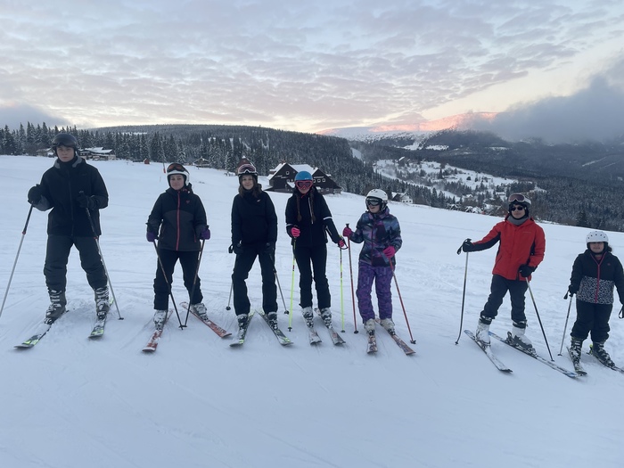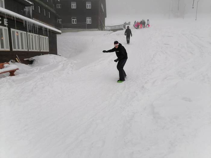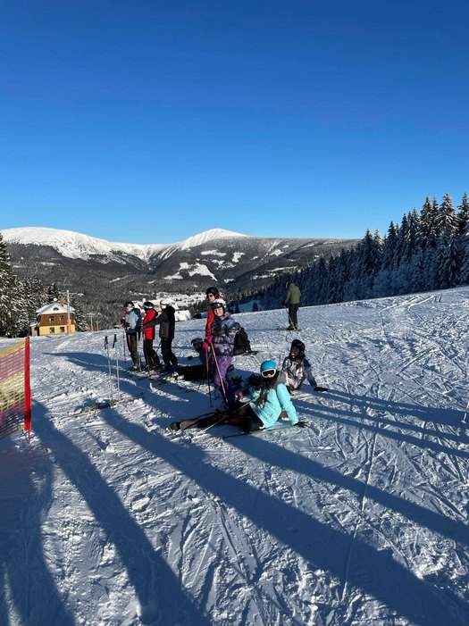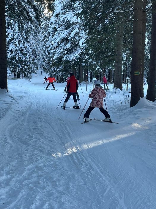 Sněhové podmínky jsou výborné, tak jsme po vydatné snídani vyrazili na svah. I přes prvotní obavy začátečníků, kterých je letos většina, jsme sjezdovku úspěšně zdolali a tím zahájili náš lyžařský výcvik. Po obědě se pokročilí lyžaři věnovali zdokonalování dlouhého oblouku a začátečníci pokračovali ve svém výcviku. Na konci dne již všichni sjížděli sjezdovku bez dopomoci. Večeř nás čekají deskové hry a zasloužený odpočinek.