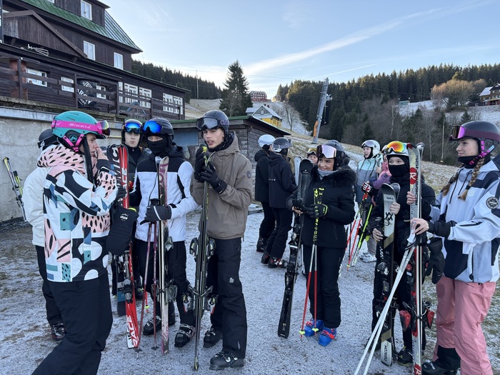 Dne 14.12. zahájili naši žáci lyžařský kurz v Peci pod Sněžkou. Sněhové podmínky nám sice nepřejí, přesto jsme dnešní den strávili na svahu. Začátečníci se již pomalu rozjíždějí, zbylé skupiny si opět po roce procvičili své lyžařské schopnosti. Sluníčko a dobrá nálada nikomu nechybí :-) .