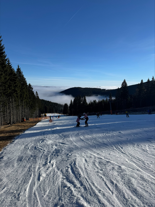 Středeční den neboli den krizový byl zažehnán hned z rána. Mlha opadla, sluníčko vysvitlo a lyžaři se vydali zdolávat různé druhy sjezdovek. Den jsme si všichni užili i s krátkými přestávkami na občerstvení. Zítra nás dle předpovědi čeká další slunečný den. Takže teď už jen večeře, odpočinkový relax a zítra opět na svah.