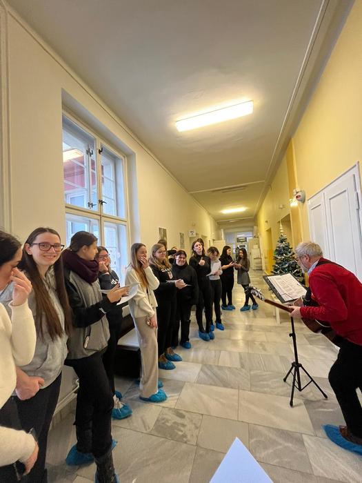 Zpěv koled a folkových i popových písní zpříjemnila mnohdy dlouhé chvíle pacientů v nemocničním zařízení. Zvláště zaujaly dvě skladby bratrů Nedvědových Podvod a Stánky, ale také rockovější Síla starejch vín skupiny Škwor.