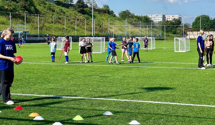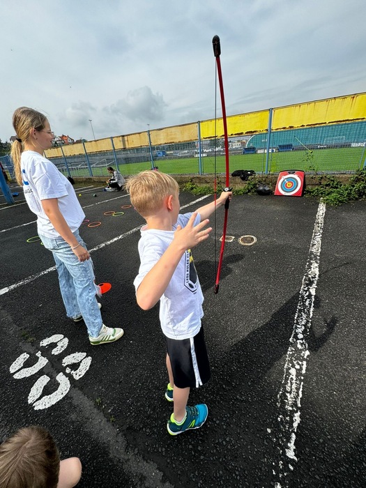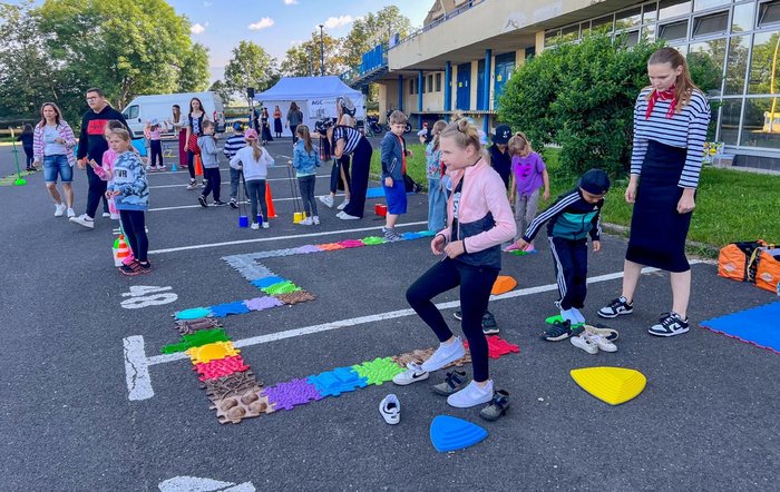 Hlavní víkendovou akcí byla účast na AGC Cupu, kde naši žáci společně s Divadlem V Pytli Petra Stolaře připravili pro návštěvníky řadu atrakcí. Děti si mohly vyzkoušet střelbu z luku, cornhole, chůzi na chůdách, trickboard, pro menší pak bylo připraveno lovení rybiček, hod do klobouku, opičí dráha aj. Jako tradičně byl velký zájem o malování na obličej.