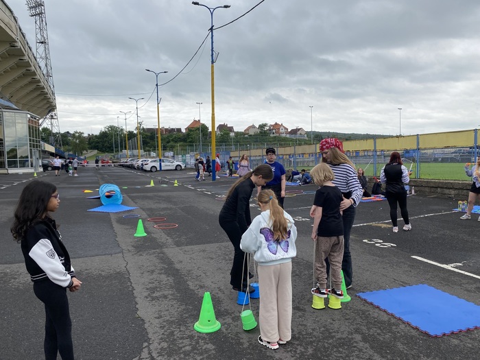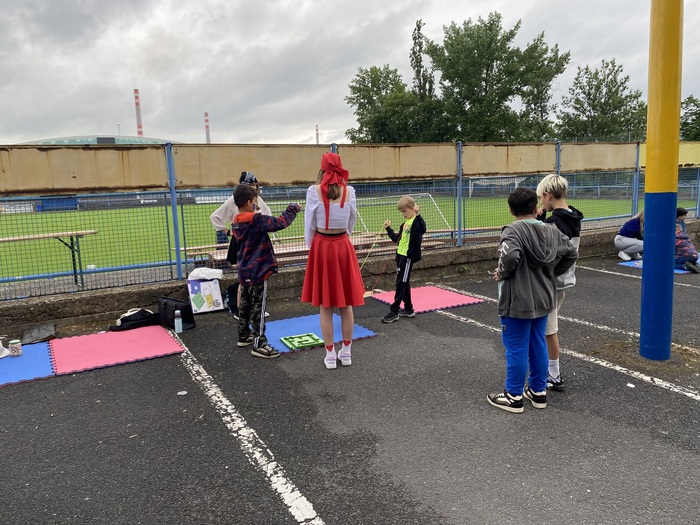 Hlavní víkendovou akcí byla účast na AGC Cupu, kde naši žáci společně s Divadlem V Pytli Petra Stolaře připravili pro návštěvníky řadu atrakcí. Děti si mohly vyzkoušet střelbu z luku, cornhole, chůzi na chůdách, trickboard, pro menší pak bylo připraveno lovení rybiček, hod do klobouku, opičí dráha aj. Jako tradičně byl velký zájem o malování na obličej.